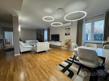 La soluzione si compone di ampio e luminoso soggiorno con accesso diretto al portico coperto, ideale per pranzi e cene all'aperto - cucina separata e abitabile con accesso diretto al verde esclusivo. A completare il piano, due camere da letto matrimoniali e doppi servizi finestrati.