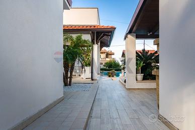 Rif: 22841072-72 Classe energetica: B - EPglnr: 34.00 kWh/m² VILLA UNIFAMILIARE CON PISCINA - CINISI - CONTRADA POZZILLO - PUNTA RAISI - Strada statale 113 al km 228,900 A pochissimi minuti dall'Aeroporto " Falcone Borsellino" si propone la vendita in esclusiva di una Villa Unifamiliare con piscina da utilizzare come abitazione privata tutto l'anno o come b&b o casa vacanze. L' Immobile si trova in perfette condizioni strutturali ed è dotato di tutti gli impianti totalmente nuovi e all'avanguardia, dal fotovoltaico ai pannelli solari evergreen e dalla video sorveglianza all'impianto d'irrigazione. La Villa si posiziona su due livelli offrendo ambienti molto grandi e funzionali: - al piano terra l'ingresso su soggiorno molto ampio munito di camino con vetrate a tutta altezza, cucina abitabile collegata ad una veranda da cui è possibile raggiungere la piscina con il solarium e una una cucina in muratura, uno studio o camera, una lavanderia. - al primo piamo troviamo tre camere da letto di cui una matrimoniale con all'interno il bagno e un'altra stanza con finestra adibita a cabina armadio, le due camere singole molto ampie ed un altro bagno. Le pavimentazione si presenta con listoni in parquet di legno rovere chiaro e in tutto l'arredamento predomina il bianco rendendo gli ambienti eleganti. All'esterno è stata realizzata una dependance con due camere da letto matrimoniali e bagni con doccia la cui pavimentazione si presenza in parquet di rovere scuro. Adiacente alla cucina in muratura esterna si trova un locale utilizzato come dispensa e deposito attrezzi per il giardinaggio. Un altro locale in prossimità dell'ingresso della Villa adibito a cappella privata con le sue opere d'arte e sculture che la rendono un luogo molto suggestivo che trasmette tanta serenità e pace interiore. Tutto lo spazio esterno alla Villa è ben curato con piante e alberi tropicali ideale per gli amici a quattro zampe e tale spazio consente ovviamente...