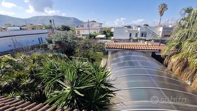 Rif: 40791141-9 Classe energetica: G Mare - Villa unifamiliare su lotto di circa 800 mq, sviluppata al piano terra con portico coperto su due lati oltre giardino. Internamente composta da: ingresso, ampia cucina living, salone doppio, 2 camere da letto, 2 stanzette e doppi servizi. Spazi esterni con giardino privato e possibilità di realizzare piscina e area barbecue. Scala interna per il terrazzo, con camera e accesso a terrazzo panoramico vista mare. In contesto tranquillo, a circa 6,5 km dalla spiaggia di Magaggiari (Cinisi), al confine con Terrasini. Ideale per chi cerca privacy e relax vicino al mare.