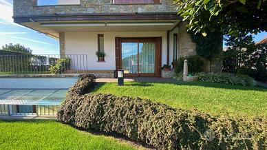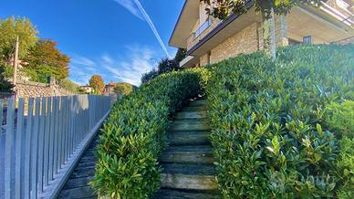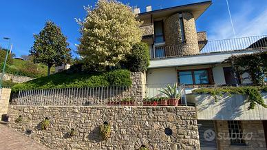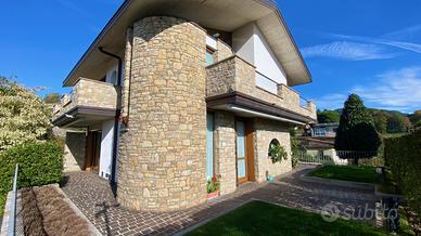 NUOVO PREZZO RIBASSATO! DA EURO 549.000 AD EURO 499.000. In posizione dominante, con una splendida vista sulla vallata e sulle colline circostanti, prestigiosa villa singola di oltre 340 mq, circondata da un curato giardino finemente piantumato di 900 mq. Abitazione completamente indipendente negli ingressi e negli impianti, caratterizzata da ampi spazi abitativi, eleganti rifiniture interne, accessori multipli e importanti rivestimenti esterni in pietra naturale di Credaro e porfido che da subito la distinguono al primo sguardo. Soluzione ideale per le esigenze di una famiglia, è composta al suo interno da: un ampia zona living con camino, cucina abitabile, bagno di servizio e ben due ingressi al piano terra; due camere matrimoniali, due bagni, corridoio e due terrazzi a elle, con meravigliosa vista panoramica al piano primo; una generosa taverna con cucina e camino, terza camera-studio, un bagno, la lavanderia, una cantina e l'intercapedine al piano seminterrato con accesso sul giardino; la centrale termica, un ripostiglio, il vano scala con accesso diretto al box triplo di 55 mq al piano interrato. Costruita nel 2000 dall'attuate proprietà, si presenta in perfette condizioni di manutenzione generale. Centro cittadino, stazione FS e scuole a pochi minuti di distanza a piedi. Full optionals, dispone di: impianto d'antifurto e di videosorveglianza, climatizzatori, serramenti in legno doppio vetro scorrevoli con antoni portefinestre elettrici, due camini a legna, basculante box automatica, impianto di irrigazione, pavimenti in grès porcellanato e parquet, portoncini blindati, videocitofono e vasca idromassaggio. Numerose soluzioni di arredo su misura incluse nell'immobile. Classe energetica: D - ipe: 158,16 Kwh/mqa. Per info & Visite: Andrea Colombelli tel. 035.79.29.22 - mobile 339.43.15.769 - e-mail: caluscodadda@gabetti.it HOUSE & COMPANY 360 di C.A. - Affiliato GABETTI FRANCHISING di Calusco d' Adda (Bg) Vieni a trovarci!