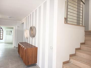 Atripalda, in Contrada Pettirossi, ad un 1,5 km dal Centro, si propone in vendita una soluzione singola con giardino e terreno circostante. L'immobile, circondato da 2015 mq di terreno con pozzo, è suddiviso in 2 unità abitative completamente indipendenti. La prima, ristrutturata finemente 8 anni fa, ha una superficie catastale di 180 mq. disposti tra il Piano Giorno ed il Piano Notte: Ampia zona living - cucina con accesso al giardino e wc; 3 camere da letto, di cui una con bagno padronale, zona lavanderia e wc. - Dotata di riscaldamento a pavimento, climatizzatori inverter ed impianto domotico. La seconda unità abitativa di 130 mq. catastali è disposta su un unico livello: Salone con camino con accesso al terrazzo di 45 mq. angolo cottura, 2 vani letto, tripli accessori con vasca idromassaggio - Predisposizione Filo diffusione. Fanno parte della proprietà: - Una tavernetta di 60 mq. rifinita con cucina e wc, termo camino, climatizzatore, video citofono. - Un garage di 135 mq con serranda automatizzata, bagno e cantina. La proprietà ha un doppio accesso carrabile e pedonale.