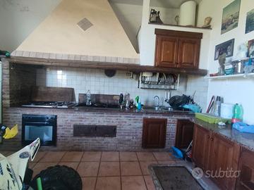 Ampio salone con cucina a vista e camino,