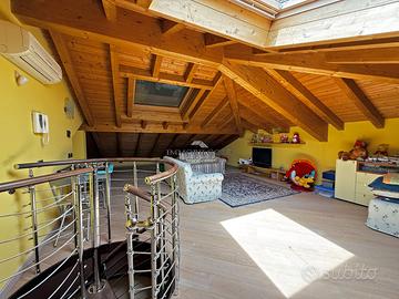 Salendo una graziosa scala a chiocciola, si accede al piano superiore dove si apre una mansarda di 60 mq, luminosa e versatile, ideale come spazio creativo, zona relax, studio o ulteriore area living.