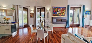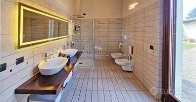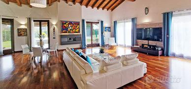 La villa presenta ottime finiture, a partire dalla pavimentazione in parquet di legno Marbau presente in tutta la casa ad eccezione dei bagni, porte scorrevoli in wengè, isolamento termico anti condensa, serramenti in legno doppio vetro, con vetrate antisfondamento e gas basso emissivo, zanzariere, riscaldamento a pavimento a zone separate, caldaia a condensazione, impianto di condizionamento