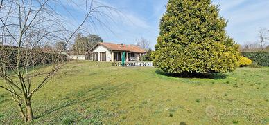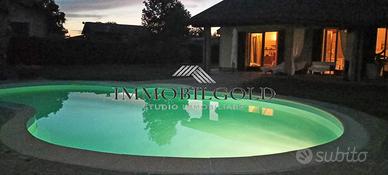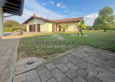 Vigevano-Zona Corso Genova: Immobilgold propone in vendita elegante e raffinata dimora costituita da una villa singola di circa 180 mq. commerciali disposti su unico livello, oltra ad un giardino privato di circa 3350 mq impreziosito da una splendida piscina interrata, ideale per indimenticabili momenti di relax. La villa, edificata nel 2008, rappresenta un perfetto connubio tra eleganza, funzionalità e tecnologia. La gestione degli spazi, la luminosità degli ambienti e i materiali utilizzati nella costruzione fanno di questa dimora un'oasi di tranquillità per vivere momenti indimenticabili con famiglia e amici, senza trascurare l'aspetto green. Entrando nella villa ci troviamo nella zona living, un ampio open-space che comprende cucina e zona pranzo, caratterizzata dalle numerose vetrate scorrevoli che affacciano sul porticato esterno e dalla quale si può ammirare il verde circostante e la piscina. Altra particolarità è il soffitto a falda in legno a vista che rende l'ambiente ancor più spazioso, oltre ad un moderno e funzionale camino ventilato.
