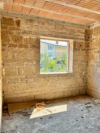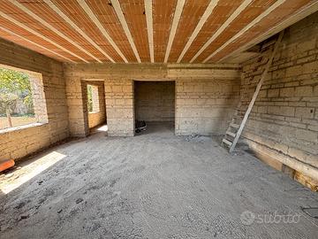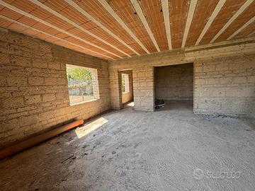 Piano primo zona giorno composta da ingresso con salone a vista, cucina abitabile, sala bagno ed antistante terrazzo con progetto già approvato per il realizzo di un porticato.