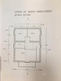Piano secondo, zona notte composta da tre camere e bagno con annesso sottotetto con altezze comode ideale per realizzare altre due camere e wc.