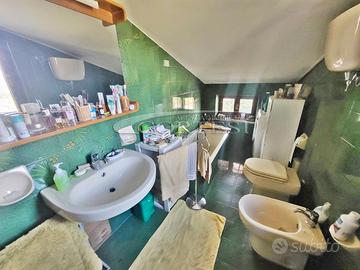 Al Piano Terra troviamo un bel portico abitabile ,un soggiorno con ampia cucina separata, due camera matrimoniale, una singola e due bagni. Al Piano Primo c'è un secondo soggiorno con cucina, un terrazzo a tasca, due camere matrimoniali, una singola ed un altro bagno. Questo piano è servito da caldaia a pellet, termostufa e camino. Scendendo al piano Seminterrato si apre una spaziosa taverna con soggiorno, camino, stufa a legna e forno a legna, cucina separata, angolo bar, lavanderia, un bagno, locale termico ed una camera da letto.