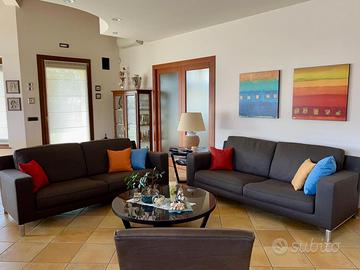 Prestigiosa villa indipendente del 2006, curata e rifinita con attenzione al dettaglio. Il giardino privato di 1.050 mq, interamente recintato e dotato di impianto di irrigazione, avvolge la casa offrendo privacy e spazi esterni curati. La zona living comprende una cucina in muratura dotata di spolert ed un luminoso salotto con raffinata stufa in maiolica e impreziosito da un suggestivo soppalco a vista, dove troviamo la camera padronale con un bagno privato. Altre due camere, due bagni con lavanderia ed il garage doppio con basculante automatizzato completano il piano abitativo al piano terra. La proprietà include inoltre una splendida taverna per le serate in famiglia ed una depandance indipendente per ospiti o genitori anziani, completamente accessibile e priva di barriere architettoniche, dotata di ulteriore garage. Tra gli impianti, spiccano il riscaldamento a pavimento, l'impianto di climatizzazione, l'impianto di allarme, diffusione stereo, aspirazione centralizzata e molto altro ancora. La luminosità naturale della casa e la sensazione di confort rendono questa abitazione unica nel suo genere che ti permetterà una qualità di vita superiore alla media. Rif. 230326 Per maggiori informazioni visita www.grupposirio.com.