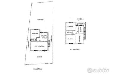 Piano superiore: accessibile da scala esterna, composto da soggiorno, cucina, due camere da letto, bagno finestrato e ampia terrazza (possibilità di veranda).