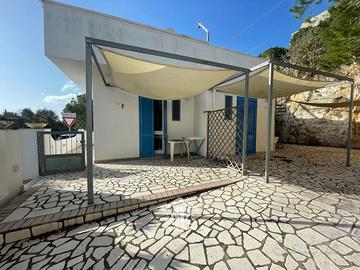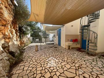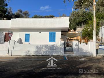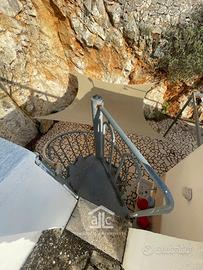 La villa dispone di due servizi, un ampio giardino pavimentato in pietra, area solare di proprietà, vista panoramica e a 100 metri dall' accesso al lido "La Sorgente".