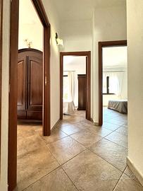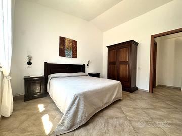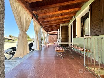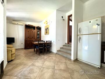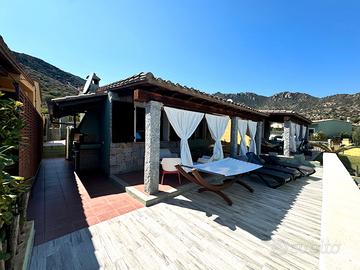 VILLASIMIUS - In località 'Cruccuris', all'interno di un complesso di recente costruzione rinomato per la tranquillità e l'ordine che lo contraddistinguono, villetta singola quadrivano, con cortile fronte e retro, distante 800 metri dal mare. Posteggiata l'auto lungo strada o all'interno dell'area cortilizia privata, tramite qualche gradino si raggiunge un solarium lastricato su cui affaccia la spaziosa veranda coperta dalla quale si può godere di una discreta vista mare; lateralmente all'immobile sono presenti una doccia esterna e un barbecue. Varcata la soglia d'ingresso si viene accolti da un luminoso soggiorno-pranzo organizzato da un lato con divano e tv e dall'altra con parete cottura completa. Tre gradini a salire rispetto alla zona giorno e si trova la zona notte, composta da tre comode camere tutte con letto matrimoniale e, due delle quali, con ingresso indipendente dal cortile sul retro.A completare la zona, un bagno finestrato completo di doccia. A completare la proprietà, nell'interrato, una spaziosa cantina. L'immobile si presenta in ottime condizioni, è completamente climatizzato eviene venduto parzialmente arredato. Si consiglia la soluzione a chi è alla ricerca di una residenza estiva lontana dai rumori del centro e non distante dal mare. Costi condominiali: 400 euro all'anno.