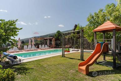 RIF 2182 La RE/MAX Domus Nova propone questa splendida villa singola situata a Castiglione di Sicilia e disposta su tre livelli, con una superficie totale di circa 400 metri quadrati in NUDA PROPRIETA' (eta' proprietario 84 anni). Essa comprende 8 locali, tra cui ampie camere da letto, luminoso soggiorno ed una piccola cucina moderna e funzionale. L'intera proprietà è stata recentemente ristrutturata quindi il suo stato di conservazione è impeccabile. L'arredamento è di alta qualità e rende gli spazi confortevoli e accoglienti. Tutte le stanze si affacciano su terrazze che offrono una vista mozzafiato sulla splendida campagna circostante, sui vigneti di Passopisciaro dove si producono vini di eccellenza, e sull'Etna. La villa dispone anche di un giardino privato con ampie terrazze e di un terreno di 25.000 mq. Inoltre una piscina con acqua di recentissima costruzione rende ancora più piacevole la residenza. Questa villa è il luogo ideale per chi ama la natura e vuole godere della privacy e della tranquillità. L'impianto a pavimento garantisce un'efficace distribuzione del calore in tutta la casa, rendendola confortevole anche nei mesi più freddi, inoltre dispone di pannelli fotovoltaici per una massima efficienza energetica. Il riscaldamento è autonomo, permettendo di regolare la temperatura desiderata in base alle proprie esigenze. Non perdere l'opportunità di acquistare questa meravigliosa villa e vivere immerso nella bellezza della Sicilia. Ideale come investimento per poter realizzare una lussuosa casa vacanze o un B&B in quanto dispone già delle autorizzazioni. NB. Possibilità di acquistare la PIENA PROPRIETA' al prezzo di 849.000,00 Codice ID MLS: 32311104-68 . RE/MAX DOMUS NOVA contattaci allo o scrivici su whatsapp al Se l'immobile