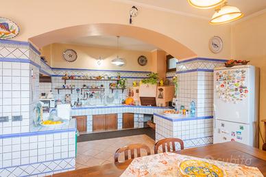 Composta da: al piano S1 da una cantina di mq 160 circa con cucina in muratura e forno a legna, wc con doccia e due ampi locali ripostiglio; garage di mq 54 più locale palestra, spazio esterno carrabile coperto da tendoni per 4/5 posti auto;