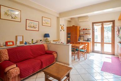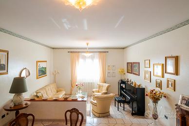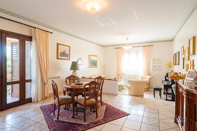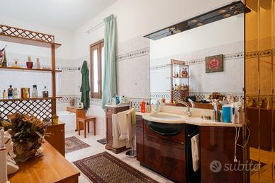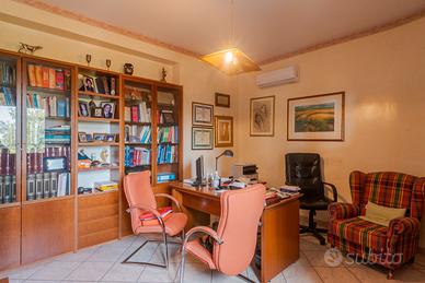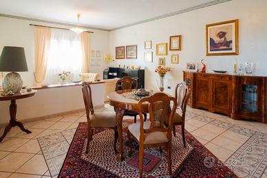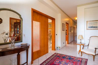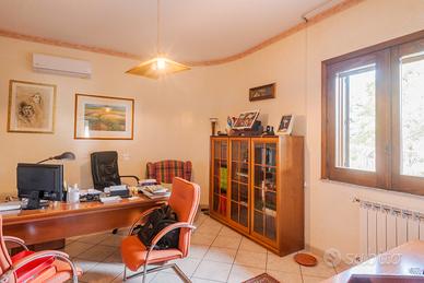 al piano terra di mq 203 circa ingresso disimpegno di un vano, salone di due vani, vano studio, cucina abitabile con lavanderia annessa, matrimoniale con grande bagno in camera, ampio disimpegno e altre due camere matrimoniali con bagno di pertinenza. Dal salone si accede ad un portico di quasi mq 35. al piano sottotetto spazio abitabile non rifinito si circa di 80 mq.