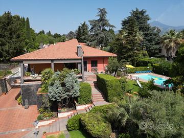 Trecastagni via Papa Giovanni XXIII panoramica villa singola con piscina e parco con alberi di alto fusto di mq 1800 circa.