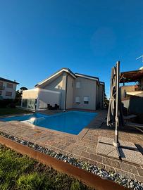 Vendo villa singola con piscina e gazebo di 50 metri quadri vicina al centro di Noventa vicentina! 5 minuti dal casello autostradale della a31! Tettoia per 3 auto! 5 camere, 3 bagni e una lavanderia, cucina soggiorno e salotto! La camera principale ha la cabina armadio e bagno in camera! Al piano terra si trovano inoltre una cantina, sala cinema e studio o palestra! Il riscaldamento e raffreddamento avviene con pompa di calore. Sono presenti 20 kw di fotovoltaico e batterie di accumulo tesla per 45 kw! Sono presenti videocamera e sistema di allarme!! La casa è stata ristrutturata totalmente nel 2022! Volendo la casa può venire venduta completamente arredata!