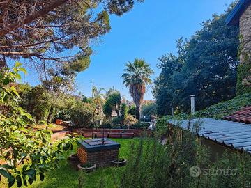 Villa singola su due livelli , 3 camere matrimoniali, salone con divano letto matrimoniale, 2 bagni, soggiorno con camino, cucina attrezzata di stoviglie ed elettrodomestici, lavatrice, portico con cucina, forno a pietra e barbecue. Garage e parcheggio interno ed esterno. Interamente climatizzata. Terrazze attrezzate, giardino, piscina con bagno e spogliatoio funzionante dal 31 maggio. Fornita di biancheria da letto e bagno.