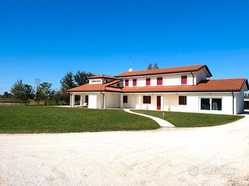 Villa singola del 2007 su due livelli con ca. 6.000 mq. di scoperto privato, laghetto e predisposizione piscina. Dal cancello accediamo al viale d'ingresso che ci conduce nel retro della casa con l'area parcheggio e il garage. Dal vialetto si arriva al portico ed area relax pavimentata con la possibilità di installare una pompeiana. Si entra nell'abitazione su un disimpegno che confina con una cucina abitabile completamente arredata. Il soggiorno affaccia su una porta finestra che permette l'accesso alla zona relax. L'ambiente è ben distribuito con la zona pranzo, lo spazio per un divano, la parete attrezzata e il camino. A concludere il piano terra troviamo un bagno finestrato, la lavanderia e il garage accessibile direttamente dall'interno. Quest'ultimo è stato pensato per poter essere utilizzato come monolocale completamente autonomo, con angolo cottura e bagno. Salendo le scale in marmo si raggiunge il primo piano dove troviamo la camera padronale mansardata, con cabina armadio e una stanza finestrata con idromassaggio e separato il bagno. Seguono poi una camera doppia, una camera singola e un bagno finestrato con box doccia. All'esterno troviamo il giardino piantumato con un laghetto artificiale e la possibilità di installare una piscina, anche riscaldata. Caratteristiche: riscaldamento autonomo diviso in zone, pannelli solari, impianto d'antifurto e videosorveglianza, impianto di climatizzazione, predisposizione per raffrescamento a pavimento, zanzariere. L'immobile viene venduto arredato di: soggiorno con parete attrezzata, tavolo, sedie e divano. cucina arredata, arredo bagni, camera matrimoniale con cabina armadio, camera doppia con arredo. La zona dell'immobile è ipotetica per salvaguardare la privacy del proprietario. Per i nostri clienti, offriamo consulenza finanziaria gratuita. Il nostro ufficio è aperto dal Lunedì al Sabato. Lun-Ven dalle 09.00 alle 12.30 e dalle 15.00 alle 19.30 Sab. su appuntamento dalle 09.00 alle 13.00 Tel: