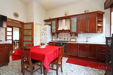 Al piano primo, accessibile tramite un'elegante doppia scala esterna, si sviluppa l'abitazione principale, composta da: ingresso, studio, salone con accesso a terrazzino, ampia cucina abitabile con annessa dispensa, disimpegno zona notte, quattro camere da letto, cabina armadio e due bagni.