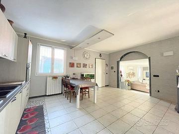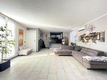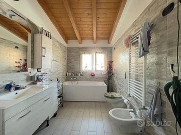 Ci troviamo in zona residenziale, nella vicina frazione di Battuello, in un'abitazione unica nel suo genere, disposta su due livelli dove, l'ampia e luminosa zona giorno posta al piano terreno è caratterizzata da spazi ben distribuiti con salone doppio, zona living, ampia cucina abitabile, bagno e lavanderia. Al piano superiore troviamo due camere da letto e un secondo servizio. Al primo piano troviamo eleganti travi a vista ed un bellissimo terrazzo con spa privata affacciata sia sul verde che sulla piscina interrata.