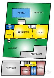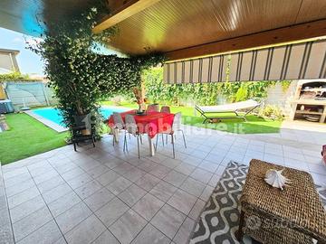 Nel giardino trova spazio una fantastica piscina dove sarà possibile trascorrere momenti indimenticabili con amici e parenti e rilassarsi in una cornice tranquilla ed in totale privacy, oltre ad un'area dedicata alla convivialità dove poter organizzare apertivi, pranzi e cene o semplicemente rilassarsi.