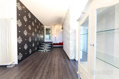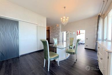 Si sviluppa al piano primo la grande zona living con cucina separata che gode di grandi vetrate e di un'ampia terrazza panoramica mozzafiato sul lago e sulle luci del centro storico, oltre giardino privato di 500 mq.