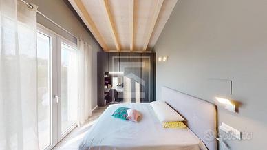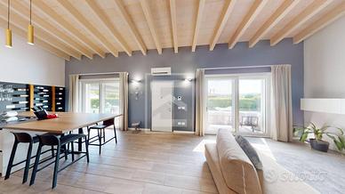 Si sviluppa completamente al piano terra compreso il capiente box doppio ed è una casa cosiddetta "attiva" poiché produce più energia di quanto necessario.