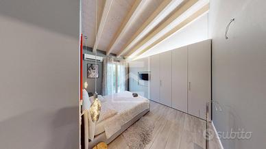 Nella zona notte insistono tre camere da letto (una padronale con bagno privato) e un secondo bagno. Un ampio deposito e' stato realizzato nel sottotetto.