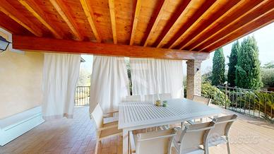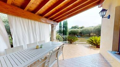 Rif: bozza guido Classe energetica: C Rif: GT 067-022 Questa villa di pregio, situata alle porte di Desenzano, è circondata da un giardino privato ed un meraviglioso uliveto di circa 2500 metri. Nel giardino, troviamo un forno professionale in muratura per pizza e un barbecue, perfetti per trascorrere piacevoli serate all'aperto in compagnia. Al piano terra, un ampio portico esposto a sud-est offre uno spazio ideale per rilassarsi, organizzare convivi e godersi il panorama. La cucina in muratura su misura si apre su una spaziosa zona giorno con un elegante camino. C'è anche un luminoso studio con una vetrata sul giardino, un bagno e una lavanderia. Al piano superiore, ci sono tre camere matrimoniali, tutte rifinite con materiali di alta qualità. Una delle camere dispone di un bagno privato e una spaziosa cabina armadio. Un altro bagno serve le altre due camere. A completare la proprietà, una corte interna con un portico capace di ospitare tre auto, garantendo comfort e sicurezza. Annuncio a carattere informativo e commerciale: i dati riportati non hanno valore contrattuale e possono essere soggetti a modifiche.