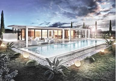 Rif: 33091035-203 Classe energetica: A4 - EPglnr: 12.60 kWh/m³ Rif: EB-035-203 Nuove Ville singole A4 con piscina privata nella "campagna" di Desenzano del Garda. A ridosso della città comodo quindi a tutti i servizi nonché al casello autostradale nella prima periferia di Desenzano del Garda, nasce arroccato su una verde collina un Resort in area protetta e video-sorvegliata di circa mq 37.000. La zona viene chiamata "piccola Toscana" in quanto i vigneti a perdita d'occhio che salgono e scendono le colline circostanti e la tranquillità della location ricordano le atmosfere che si respirano in Toscana. Disponibili lotti di diverse matrature con possibilita' di scegliere tra diversi progetti (villa realizzata su un unico piano, su due piani, moderna con tetto piatto oppure classica con tetto tradizionale. Nelle fotografie allegate alcuni esempi di ville gia' realizzate e abitate nel Resort). La casa supera lo standard energia quasi zero, e produce piu energia di quanta ne consuma, garantiti comfort abitativo e valore nel tempo. Le uniche parti comuni saranno il cancello di entrata, le strade interne di accesso alle ville e lilluminazione esterna; ogni abitazione sarà cintata ed avrà giardino e piscina privati. Le ville possono essere progettate sia esternamente che internamente personalizzandole secondo i gusti e esigenze del cliente che verrà assistito da un professionista per perfezionare il progetto. Alto standard qualitativo di costruzione e di finiture. Le soluzioni adottate per limpiantistica della casa (impianto di riscaldamento a pavimento, raffrescamento canalizzato e pannelli fotovoltaici) sono pensate decisamente nella direzione del risparmio energetico e del comfort di qualitaÌ abitativa superiore. Le ville vengono consegnate chiavi in mano complete di giardini piantumati con irrigazione automatica, sistema d'allarme, piscina con doccia. Tempi di realizzazione 1 anno. DESENZANO DEL GARDA Sulle rive meridionali...