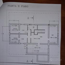 Piano primo suddiviso in salone, tinello, cucina, 2 bagni, disimpegno e 3 camere, balcone.
