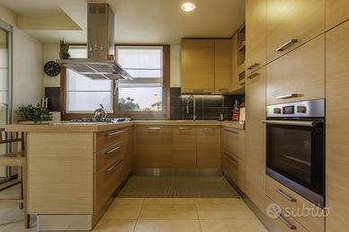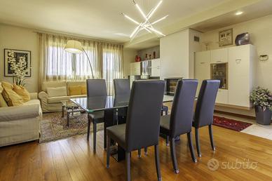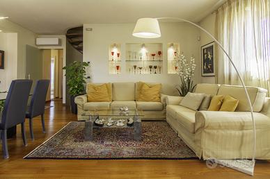Finiture di pregio: pavimenti in legno e marmo naturale, porte interne laccate, serramenti in legno/alluminio ad alte prestazioni, illuminazione di design e dettagli artigianali di grande valore.