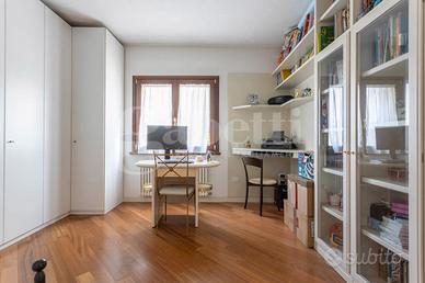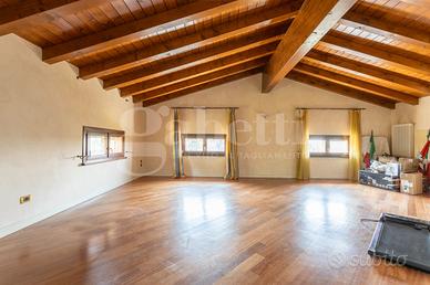 La casa si estende su una superficie di 320 mq commerciali e presenta al piano terra la zona giorno, uno studio privato e un bagno di servizio; al primo piano invece si distribuisce la zona notte, divisa in 3 camere da letto, una lavanderia e un altro bagno mentre al secondo e ultimo piano si sviluppa un ampio e privato ambiente di due stanze dedicate a guardaroba personali con un ulteriore bagno in mosaico dedicato al wellness e al relax dove è presente anche una sauna.