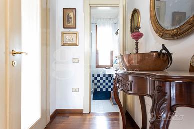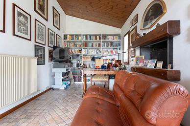 Sempre comunicanti con il soggiorno troviamo uno studio convertibile in camera da letto con il proprio caminetto che affaccia sul retro del parco, la cucina abitabile in muratura, un terzo bagno con vasca idromassaggio, una stanza guardaroba ed un ripostiglio/centrale termica.