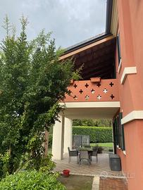 All'esterno, la vera anima della villa: un giardino sapientemente progettato e mantenuto, dove ogni dettaglio - dalle essenze vegetali ai vialetti - racconta una cura particolare e una spiccata sensibilità estetica. Un porticato coperto offre lo spazio ideale per vivere le serate estive all'aperto, in totale relax e riservatezza.
