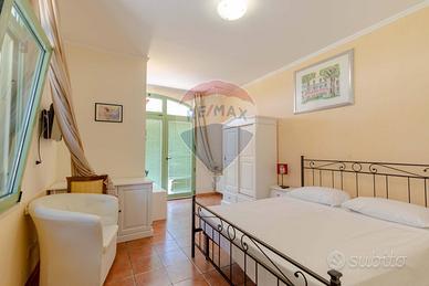 Situata su una leggera altura, la villa domina le distese verdi che la circondano, offrendo un panorama incantevole. Laccesso alla proprietà avviene attraverso un elegante viale bordato da campi e un rigoglioso oliveto, con ben 400 alberi di LECCINO, che conduce a un ampio piazzale con comodi posti auto privati.