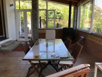 Vendesi villa singola su 2 elevazioni con annesso terreno ; p.t. composto da cucina abitabile , veranda chiusa , salone , bagno e ripostiglio ; primo piano composto da disimpegno ,2 vani letto , cabina armadio , bagno e verande . Terreno circostante di c.a. 1.200 mq con 2 posti auto coperti , lavanderia e deposito . Panorama mozzafiato sulle isole Eolie , ottime condizioni, impianto fotovoltaico , rifiniture di pregio . NO AGENZIE.