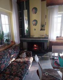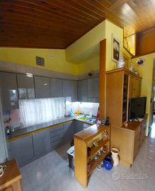 L'abitazione principale si sviluppa su un unico livello e comprende un soggiorno con cucina in open space e camino, 2 camere da letto ed 1 bagno. Al piano sottostante si apre un ampio salone rustico con 2 caminetti, forno a legna, stufa a pellet, una camera aggiuntiva, una sala hobby e bagno.