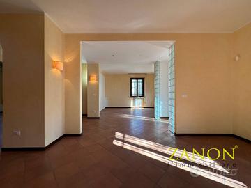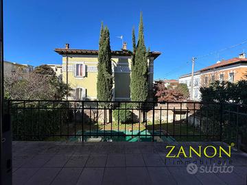 Rif: 3555 Classe energetica: D - EPglnr: 101.19 kWh/m² In esclusiva proponiamo prestigiosa villa singola completamente ristrutturata nel 2006, situata in una delle zone residenziali più richieste di Gorizia, in Via Leopardi. Una soluzione unica nel suo genere, ideale per chi cerca spazi generosi, privacy, comfort moderni e la possibilità di usufruire di due unità abitative indipendenti. La villa si sviluppa su una superficie complessiva di 372 mq ed è composta da due appartamenti distinti, perfetti per famiglie numerose, genitori/figli o per creare unabitazione con studio professionale indipendente. Tutte le porte interne e l'armadiatura sono realizzate in pregiato noce nazionale, conferendo calore, eleganza e un tocco di raffinata artigianalità ad ogni ambiente. Allingresso troviamo un ampio salone con camino a legna, ideale per creare una zona relax confortevole, accompagnato da una stanza dedicata alla sala da pranzo. Lambiente open space rende gli spazi ancora più affascinanti, con la luce naturale che penetra dai numerosi punti luce, creando unatmosfera calda e accogliente. Segue una cucina abitabile con una seconda sala da pranzo, impreziosita da una stube in maiolica proveniente dal Trentino, e un terrazzo di 9 mq con affaccio sul giardino di proprietà. A completare il piano, un disimpegno con armadio a muro e un bagno di servizio. Unelegante scala conduce al piano superiore, dove si sviluppa la zona notte. Un disimpegno distribuisce in maniera le gli spazi, conducendo a una camera da letto con un ulteriore ambiente adatto a cabina armadio o studio, completata da un terrazzo di 6 mq con affaccio sul giardino. A completare il piano, un bagno con tutti i servizi, la seconda camera da letto e una suite padronale con bagno, cabina armadio e terrazzo con affaccio sulla storica Via Leopardi. Il secondo appartamento, con accesso sia dal piano terra del primo appartamento sia tramite ingresso indipendente dal giardino, si compone di...
