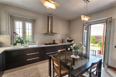 Al piano terra troviamo un ampio salone con camino del '700 e accesso diretto al giardino, una spaziosa cucina abitabile anch'essa con accesso al verde.