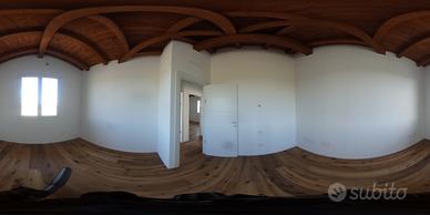 CARATTERISTICHE COSTRUTTIVE: Le opere edilizie della Villetta comprendono fondazioni a platea in cemento armato, pareti perimetrali in blocchi legno-cemento con pannello termoisolante in EPS e intonaco esterno. Le pareti interne sono in laterizio con intonaco a base di gesso. Il solaio di interpiano è in latero-cemento, mentre quello di soffitto è inclinato in legno lamellare. La copertura è ventilata con manto in lamiera, e la lattoneria è in rame. Le pareti divisorie interne sono in laterizio e intonacate, e i pavimenti e i bagni sono rivestiti in gres porcellanato. L'impianto termoidraulico prevede una pompa di calore aria/acqua per il riscaldamento e l'acqua calda sanitaria. Il riscaldamento è a pavimento con serpentine e termostati per ogni stanza. L'impianto di climatizzazione è dotato di split interni su ciascun piano. L'impianto fotovoltaico ha una potenza di 2,590 kWp con 14 moduli. I serramenti esterni sono in PVC, e i portoni d