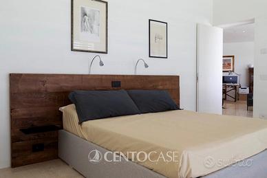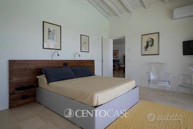 La villa, progettata con un design moderno e raffinato, offre un'atmosfera di eleganza e comfort. Al piano terra, troviamo tre ampie camere da letto e tre bagni. La camera padronale si distingue per la presenza del grande bagno en suite, sapientemente nascosto da una parete attrezzata, garantendo così privacy e funzionalità.