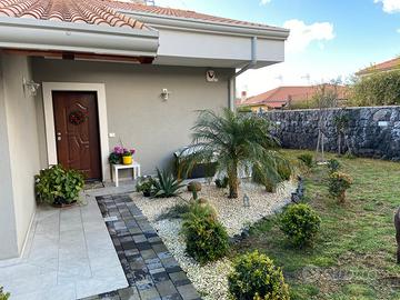 Si vende villa di nuova costruzione consegnata e abitata dal 2019. Strutturata su due livelli, il piano terra di circa 120 mq è composto da un open space di circa 55 mq con ampia finestra, bagno, camera da letto e due camere singole, di cui una ad oggi è adibita a cabina armadio; il piano primo è accessibile tramite una scala in legno ed è composto da un unico ambiente di circa 65 mq e un bagno. La villa è dotata di impianto solare termico per l'acqua sanitaria, condizionatori caldo/freddo e di un impianto fotovoltaico di 4,5 kw di produzione e 5 kw di accumulo, una colonnina da 7 kw Max per la ricarica di veicoli elettrici. Impianto dí video sorveglianza, allarme e cancello carrabile automatico. All' esterno uno spazio di circa 350 mq di giardino, con una tettoia 32 mq e un ricovero attrezzi in legno 16 mq.