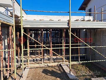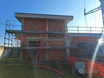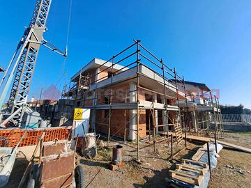NUOVA COSTRUZIONE: VILLA SINGOLA con BOX e GIARDINO. Consegna prevista per primavera 2025. In zona residenziale proponiamo villa singola così composta: piano terra, living con cucina a vista, disimpegno, bagno, camera con cabina armadio e seconda camera. Tramite scala in muratura si accede al piano superiore dove trova posto la terza camera ed il bagno (abitabili) per un totale di 110 mq. Completa la soluzione un box doppio in larghezza di 32 mq ed il giardino disposto su tre lati 230 mq. La soluzione