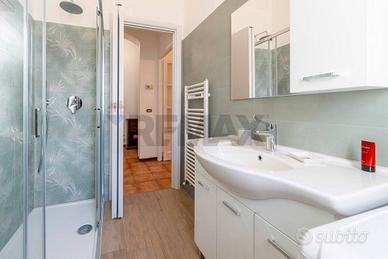 Al piano rialzato presentiamo un bilocale di circa 75 mq con tripla esposizione (Nord, Sud, Est), luminosissimo e ben arieggiato.