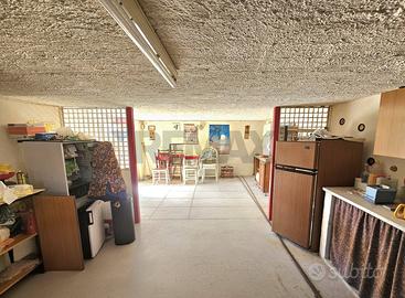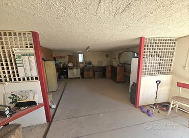Piano terra: ampio garage, una comoda stanza con cucina e forno a pietra, ideale per momenti conviviali, e un bagno.