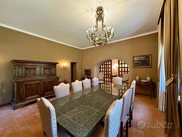 Rif. GRC765 - L'Aquila - Loc. Fuori Porta Napoli: Alle porte del centro storico, proponiamo in vendita prestigiosa villa singola del 1800,in passato tenuta di caccia della famiglia dei Baroni Manieri, di 1100 mq ca con parco di 22.000 mq ca con alberi secolari, due laghetti ornamentali, un caratteristico viale alberato e vari angoli curati per trascorrere momenti in completo relax. La villa è stata totalmente ristrutturata nel 2009, mantenendo dettagli originali. Al piano terra veniamo accolti dall'ingresso principale che ci conduce al soggiorno di rappresentanza con caratteristico camino in pietra con decori scolpiti servito da giardino, sala da pranzo, studio, cucina con tinello servita da terrazzo e bagno. Una comoda scala in pietra con ringhiera originale, ci conduce al primo piano dove troviamo quattro camere con bagno padronale, il tutto servita da balconi. Al secondo piano troviamo un appartamento con ingresso soppalcato in vetro, cicina abitabile,camera matrimoniale, zona relax con sauna e bagno con vasca idromassaggio. Completano la proprietà, una taverna di 120 mq ca con forno a legna e camino, e varie stanze pluriuso e due box auto di 30 mq ognuno. La villa è stata totalmente ristrutturata nel 2009, mantenendo dettagli originali. La villa è ideale per chi è alla ricerca di un ambiente signorile e dotato di ogni confort o ad uso ricettivo.
