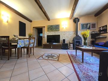 La soluzione suddivisa in due appartamenti con ingressi indipendenti è così composta: al piano terra troviamo un primo appartamento di 120 mq con ingresso, soggiorno con canna fumaria, cucina abitabile, due camere e due bagni.