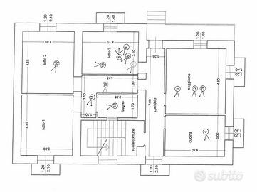 Una comoda scala ci conduce al piano superiore dove troviamo il secondo appartamento di 130 mq con ingresso, cucina abitabile, soggiorno tre camere e bagno, il tutto servito da balconi.